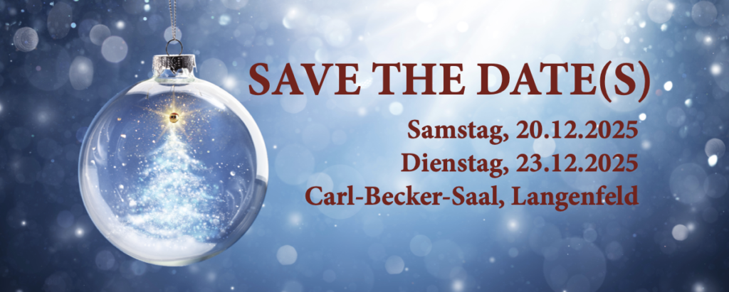 Dieses Jahr in Langenfeld mal etwas anderes, da wir neben dem traditionellen 23.12. zusätzlich nicht am 22. sondern am 20.12. spielen, da das als Samstagstermin hoffentlich für viele von Euch komfortabler ist… 🙂